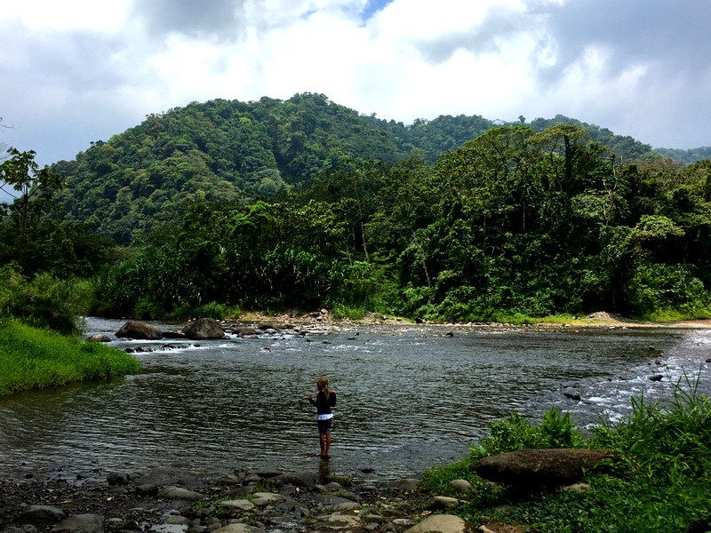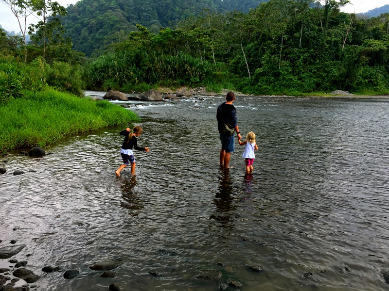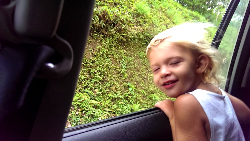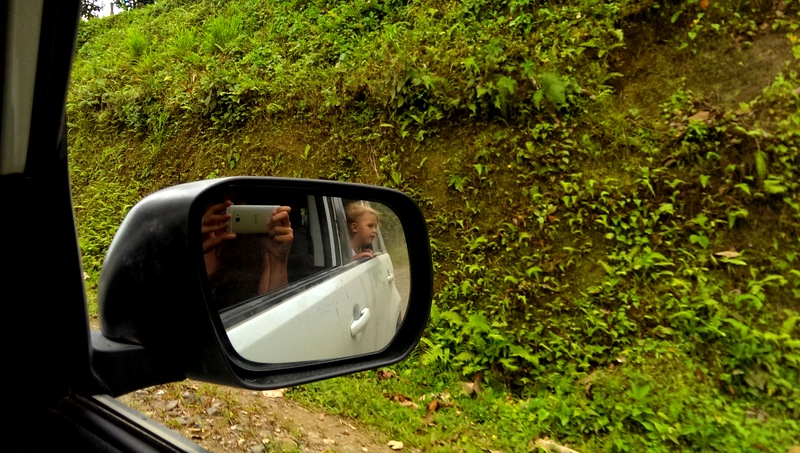 The terrifying bridge made with two tree trunks a few nailed in wood planks. I walked over first with the girls and Will followed after with the car. Sophie loved this part (and crossing the river – which was more like a lake). This is an actual route and was the way an app called Waze told us to go- however this is def the locals route.
